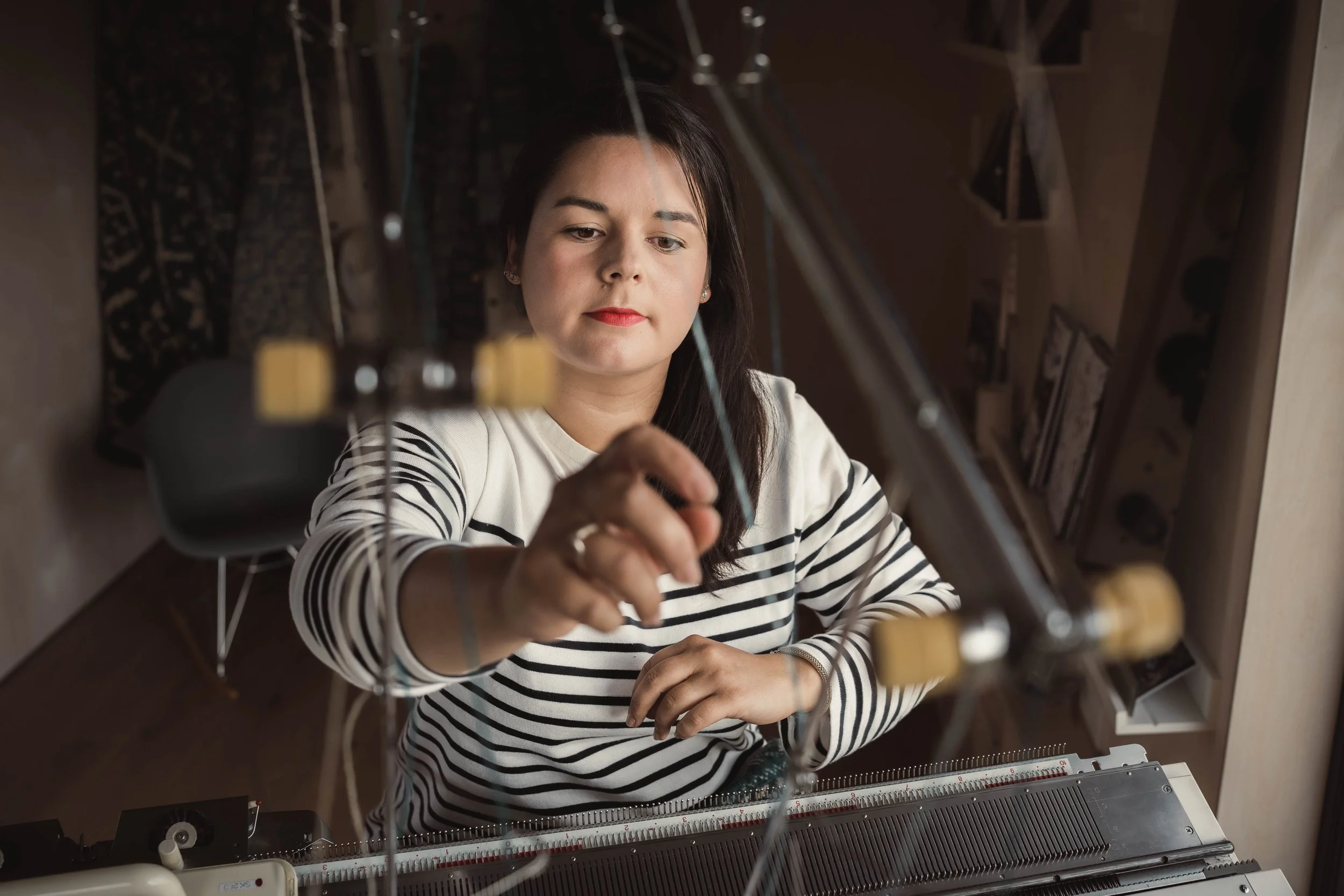 At Fair Isle with Marie, knitting is done on mechanical flat-bed knitting machines, operated by hand and requiring no electricity. Explore the machine-knitting page to delve into this fascinating process.
